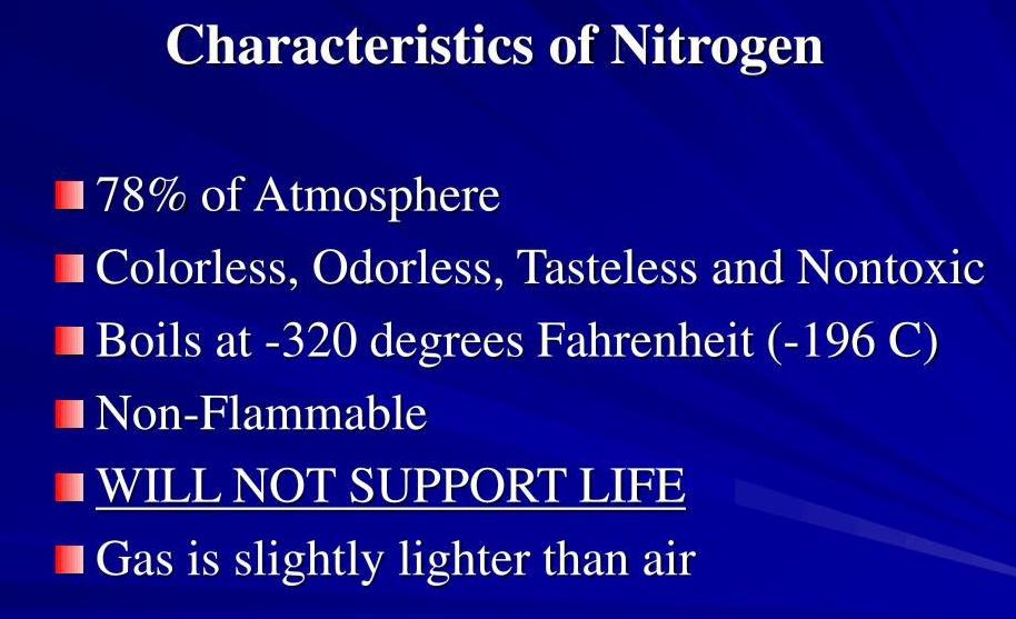Nitrogen is used an inert gas to push liquids though lines, to clear lines and to propel “pigs” through pipelines to sweep out one material before using the line to transport another material.